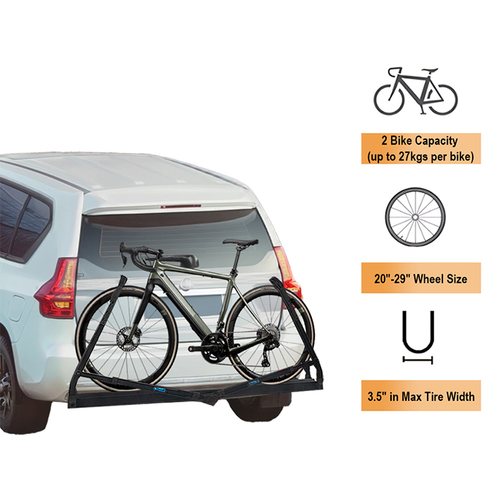 Carries 2 bikes,up to 53lbs(24kgs)each,106lbs(48kgs)total